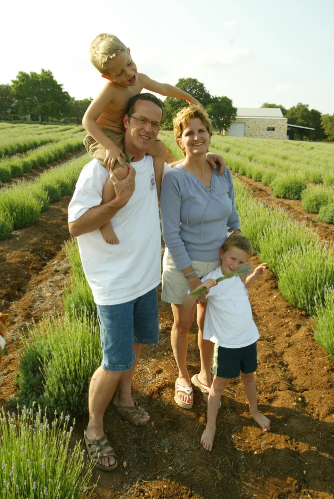 The lavender farm, called Hill Country Lavender, actually has its roots in Southern France. The idea to grow lavender came first to Robb while he was in Provence shooting a story for National Geographic magazine about perfume-making around the world. Robb was taken with the beauty of the Valensole Plateau region, where rows of bushy purple flowers cover the rolling hills like huge pastel caterpillars. This is lavender country, and as Robb talked with the local farmers, he learned that the soil and climate are comparable to the Hill Country.